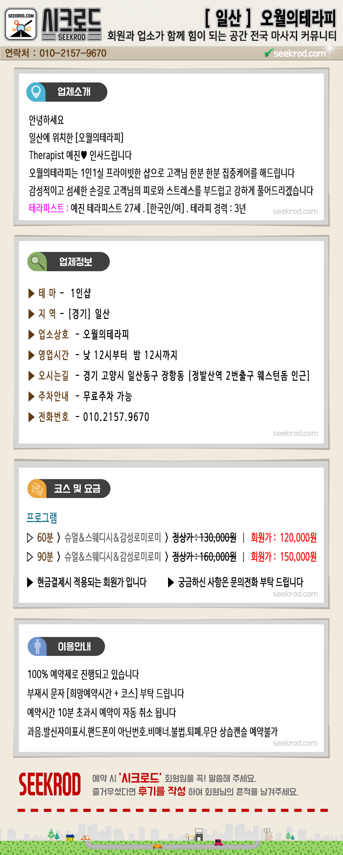 확실한 정보는 시크로드 지역별 제휴샵 게시판에서 확인해주세요